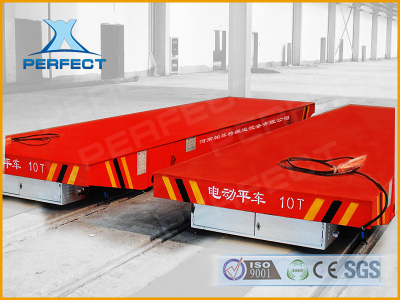 BHX系列電動平車是 滑觸線供電式電動平車。其是在軌道側面開設地溝,地溝內安 裝 滑觸線,地溝上鋪設有單面用鉸鏈固定于地上的蓋板。電動平車運行時通過安裝在平車上的地溝 翻板裝置,將蓋板掀起,翻板裝置內有同 滑觸線集電器聯接的電纜。電動平車通過后蓋板自動放回 地面。能保證無軌車輛順利通過。地溝翻板滑觸線型電動平車不受運行距離的限制。