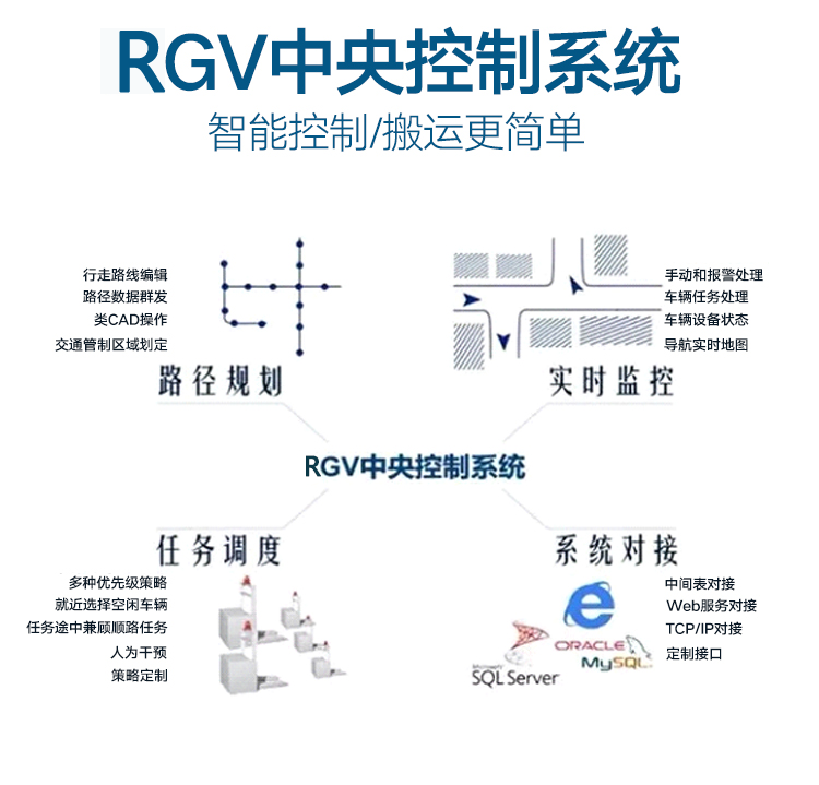 RGV屬于是有軌制導(dǎo)車輛,運(yùn)行路線上有導(dǎo)軌的引導(dǎo),全程有自動(dòng)化電器控制,可以滿足高精度的對接。由于有軌道的限制,RGV沒有自動(dòng)導(dǎo)引搬運(yùn)車AGV的靈活性好,智能程度高。